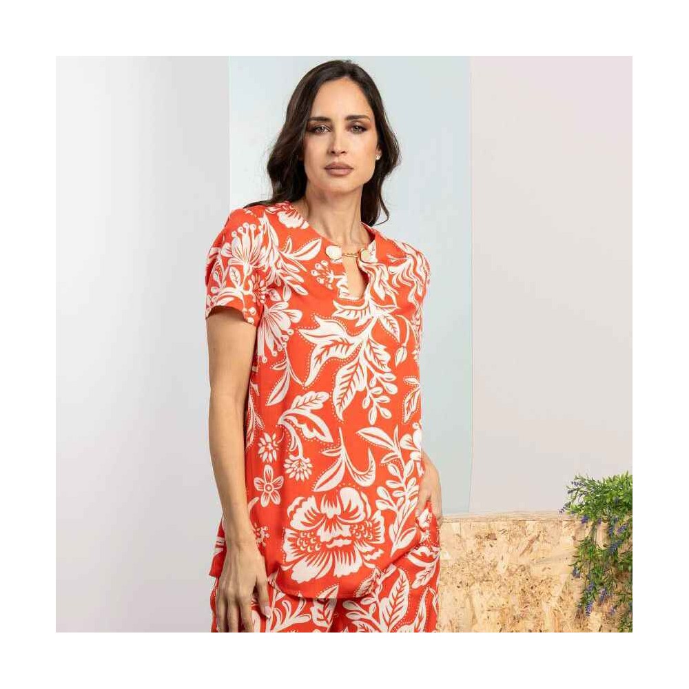 Blusa Roberto Bassi coral hojas